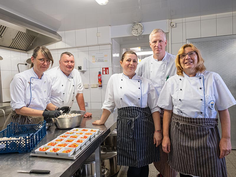 Lasst es euch schmecken! Zwei Mal Pausenvesper, ein frisch gekochtes Mittagessen aus unserer Schulmensa und für die Internatsschüler zudem Frühstück und Abendessen. Alles kommt aus unserer Schulküche, frisch auf den Tisch
