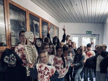 In der Woche vor den Herbstferien stand alles unter einem Motto: Halloween. In der Mensa gab es jeden Tag Grusel-Mittagessen, viele Schülerinnen und Schüler kamen spontan verkleidet, es gab den „Gruselgang“ zum Mittagessen und die Mensa war passend geschmückt –…