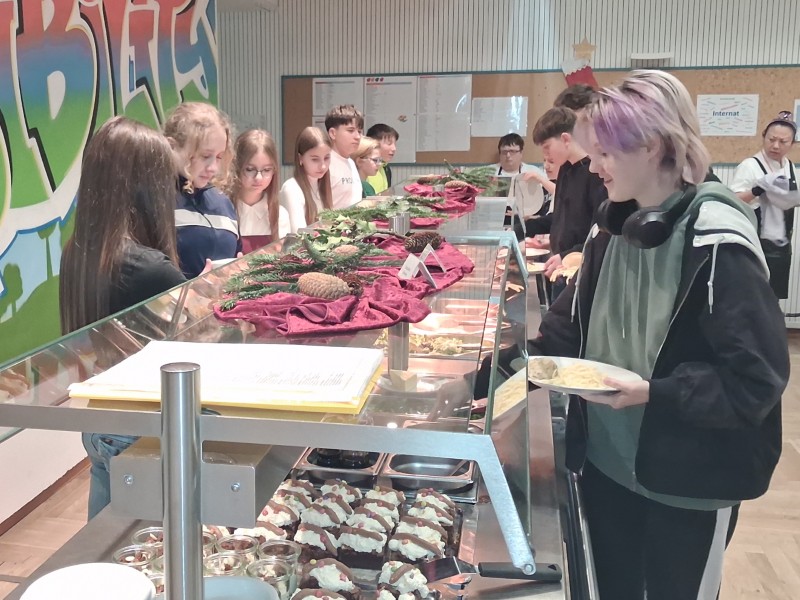 Lasst es euch schmecken! Zwei Mal Pausenvesper, ein frisch gekochtes Mittagessen aus unserer Schulmensa und für die Internatsschüler zudem Frühstück und Abendessen. Alles kommt aus unserer Schulküche, frisch auf den Tisch