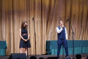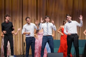 Eine Besonderheit gab es in diesem Jahr: Michael Büchler als Schulleiter des Gymnasiums und Susanne Büchler als Internatsleiterin bestritten ihre letzte Abiturfeier und gehen in den wohlverdienten Ruhestand. Aus diesem Grund gab es erstmalig auch Zeugnisse für die beiden. Natürlich nicht mit staatlicher Anerkennung, aber von Herzen von der ganzen Schulgemeinschaft. Zum Abschluss zeigte der Jahrgang noch einmal Kreativität und Humor: Quizrunden und der Abitanz brachte Schwung auf die Bühne, gefolgt von einem gemeinsamen Song – das Publikum war begeistert.