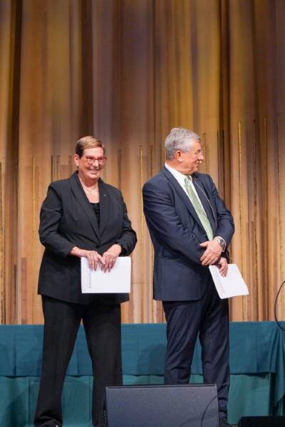 Zum Ende des Festakts galt der Abiturientin Sophia Peter und Vefa-Vorsitzender Marion Mokesch besonderer Applaus: Für langjähriges, herausragendes ehrenamtliches Engagement wurden beide mit der Hermann-Büchler-Medaille ausgezeichnet.