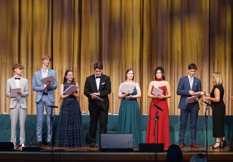 Mit einer emotionalen und zugleich heiteren Feier verabschiedete sich der diesjährige Abiturjahrgang von seiner erfolgreichen Schulzeit. Gefeiert wurde traditionell mit Benazetsaal des Kurhauses Baden-Baden und den Beginn gestaltete der Chor der Klassenstufe 5, der die Lieder „Lemon Tree“ und „Ein Hoch auf uns“ präsentierte – ein gelungener Auftakt, der Nostalgie als auch Aufbruchsstimmung vermittelte.