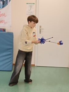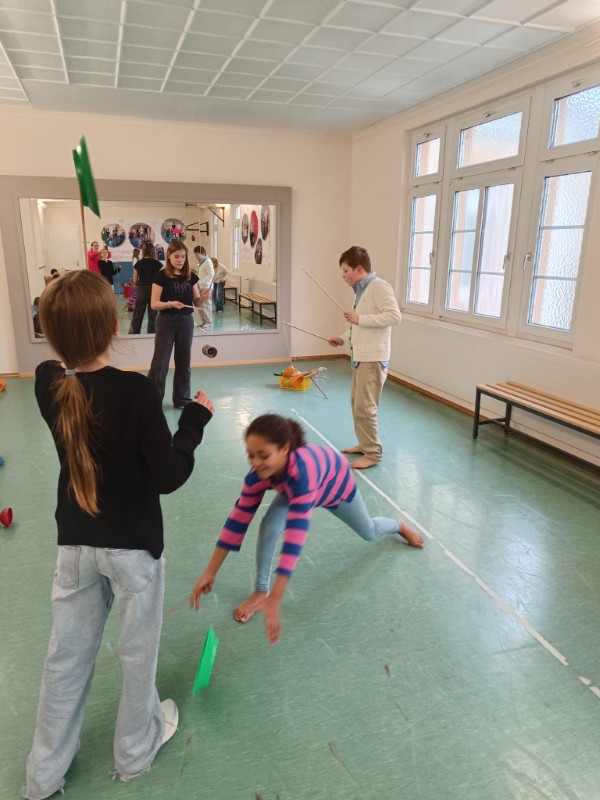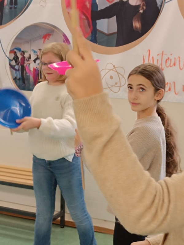 Zum Glück nicht die aus der Küche. Aber die Teller in der Jonglage-AG von Susanne Helbig, die können fliegen. Mit ein bißchen Übung sogar ziemlich lange und gut. Zuletzt hatten unserer Grundschülerinnen und Grundschüler die Möglichkeit das zu testen.