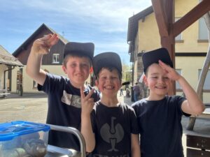 Kreative Angebote wie das Osteratelier, Frühlingsbasteln und die Upcycling-Werkstatt luden ein, eigene Ideen umzusetzen und frühlingshafte Kunstwerke zu gestalten. Ein besonderes Highlight war die „Osterhasenfabrik“, in der mit viel Freude gebastelt und gewerkt wurde. Auch draußen gab es viel zu entdecken: Ausflüge in den Wald, zum Waldspielplatz und zum Alten Schloss sorgten für Bewegung und Abwechslung.