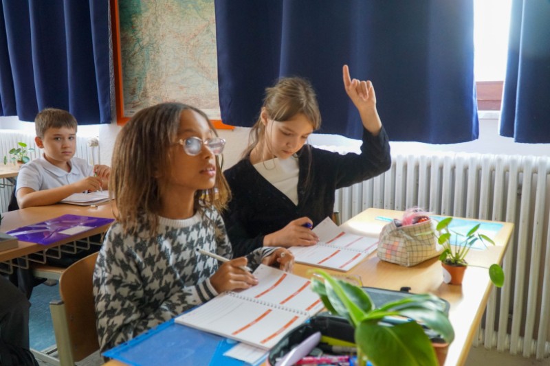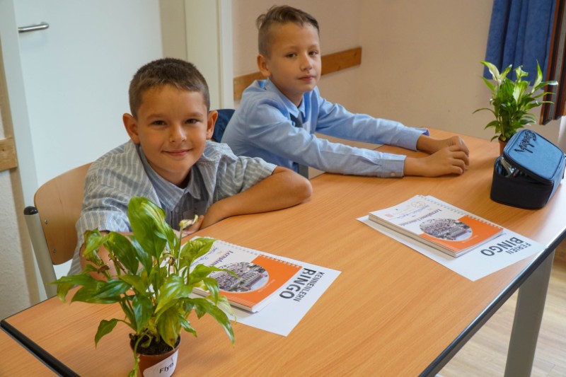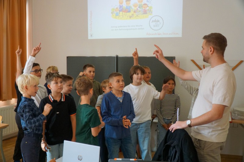 Anschließend machten sich die Klassen auf Erkundungstour durch das Schulhaus. Gezeigt wurden Fachräume, der Sportbereich, das Sekretariat, die Büros der Schulleitung und die Schulsozialpädagogik. Auch die digitalen Boards, der Schulranzenraum und die Spinde wurden gezeigt – Orte, die ab sofort zum Alltag gehören. Natürlich kam auch die Bewegung nicht zu kurz: Kleine Spiele und sportliche Elemente halfen, die Nervosität zu vertreiben und das Miteinander zu stärken.