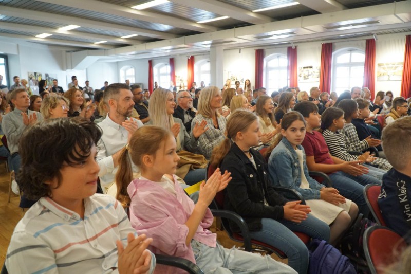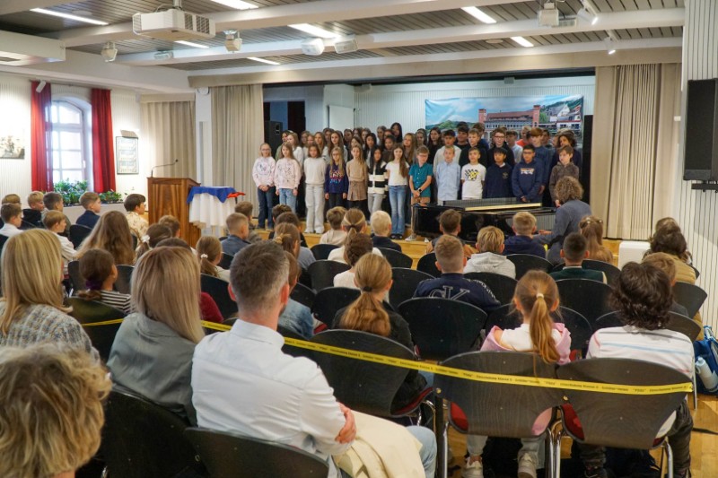 Mit einem bunten Programm und viel Vorfreude starteten unsere neuen Fünftklässler in ihr Schulleben. Schon beim Betreten der Aula warteten gelbe Bänder als „VIP-Markierungen“ auf die Kinder – schließlich bekommt man ja nicht jeden Tag einen Platz in der ersten Reihe.