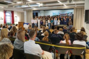 Der Chor der Sechstklässler sorgte nach nur einer kurzen Probe schon mit schwungvollen Liedern für gute Laune. Wer noch Lampenfieber hatte, merkte schnell: Hier wird nicht nur gelernt, hier wird auch gesungen, gelacht und applaudiert. Nach der Vorstellung der wichtigsten Personen, machte Gesamtschulleiter Rüdiger Lorth deutlich, dass es jetzt darum geht, dass alle gut ankommen und sich wohlfühlen. Dazu bietet das neue Konzept [ Ganztag ab September 2025 ]eine Menge Inhalte, die dabei helfen.