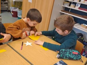Im Anschluss an die Geschichte bastelte jedes Kind seinen eigenen Wackelstern, um diesen mit nach Hause nehmen zu dürfen.