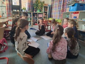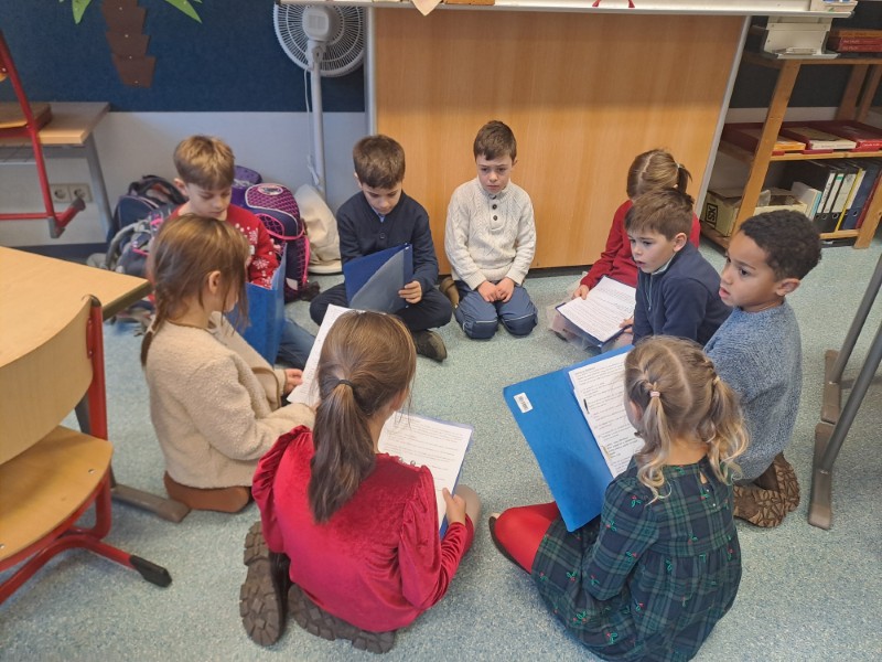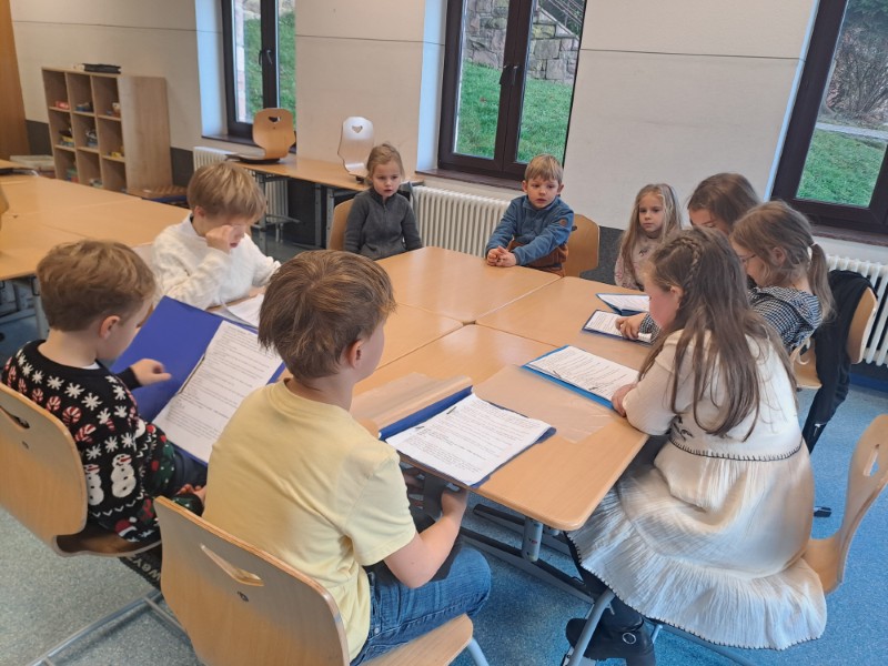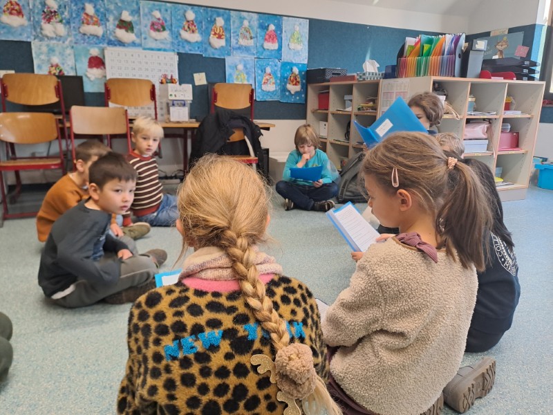 Im Rahmen der Kooperation mit dem Kindergarten luden die Zweitklässler die Vorschulkinder aus dem Kindergarten ein. In kleinen Gruppen haben die Schüler und Schülerinnen den Kindergartenkindern eine weihnachtliche Geschichte vorgelesen.