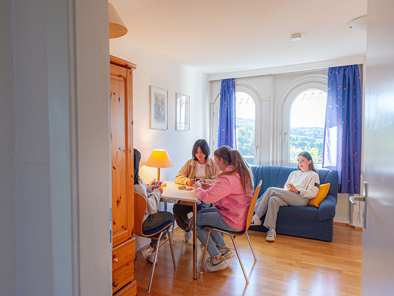 Unsere Schülerinnen und Schüler wohnen, nach Alter und Geschlecht getrennt, in verschiedenen Internatshäusern auf dem Campus. Den Jüngeren stehen Zwei- oder Dreibettzimmer zur Verfügung, den Älteren Zweibett- oder Einzelzimmer.