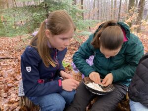 Am letzten grauen Wintertag vor dem Frühlingsbeginn zog es die SILWA-Gruppe noch einmal hinaus in den Wald – passend zu unseren Themen „Wald im Winter“ und „Feuer“. Trotz Schmuddelwetter starteten wir an unseren Wohlfühlplätzen mit der Frage: Wie überleben Tiere eigentlich den Winter? In unseren Waldtagebüchern sammelten wir Ideen zu Winterschlaf, Winterruhe, Fellwechsel, Vorräten und cleveren Kältestrategien.