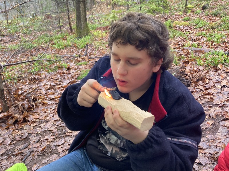 Am Feuer wurde geschnitzt: Aus Holz entstanden individuelle Löffel. Besonders spannend war das Ausbrennen der Laffe mit Glut – eine Übung in Geduld, Fingerspitzengefühl und Pustekraft.