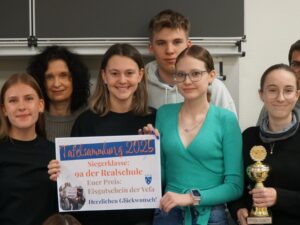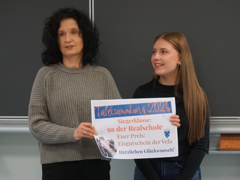 Die Realschulklasse 9a erzielte dabei das höchste Sammelergebnis. Als Anerkennung stiftete die VEFA einen besonderen Preis: einen Eisgutschein für die gesamte Klasse, der im Frühling eingelöst wird. Statt Lernzeit steht dann ein freier Nachmittag in der Eisdiele gemeinsam mit Klassenlehrerin Lea Flatten auf dem Programm.
