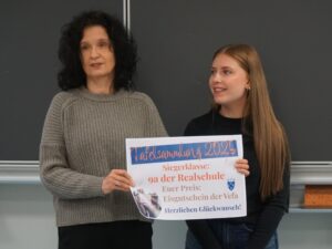 Die Preisübergabe erfolgte durch die stellvertretende Schulleiterin Andrea Katzenberger sowie Larissa Hrzek, stellvertretende Schülersprecherin. Ein herzliches Dankeschön an alle Beteiligten für diese gelungene Aktion!