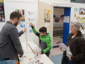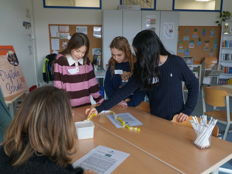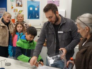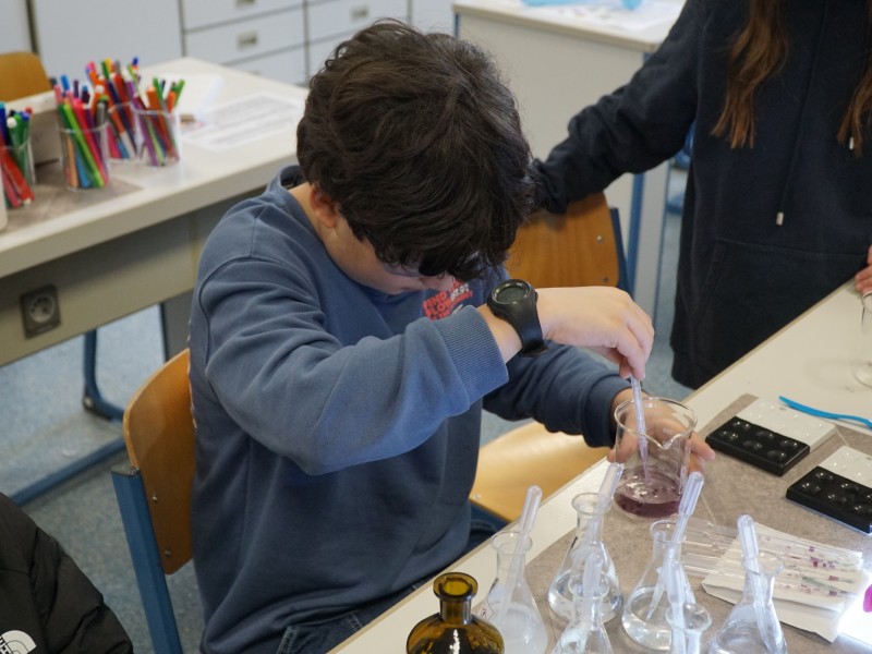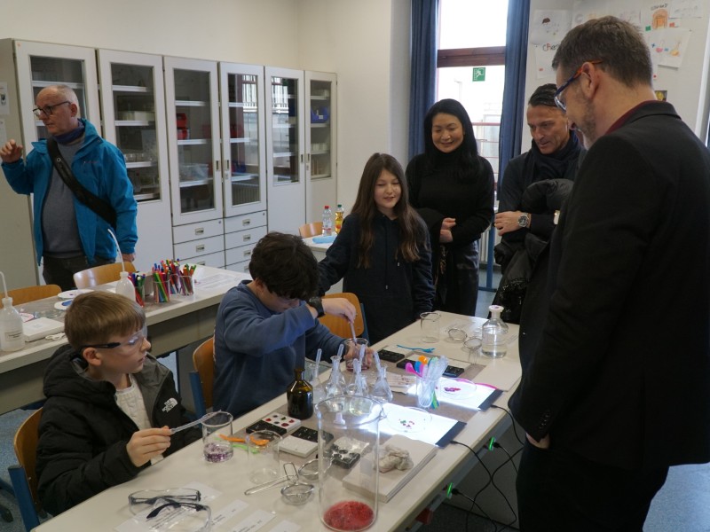 Auf dem gesamten Campus gab es viel zu entdecken: In Mathematik, Fremdsprachen und Deutsch wurde geknobelt, probiert und in Märchenwelten eingetaucht. Internationale Leckereien sorgten für genussvolle Pausen. In Chemie und Physik hieß es „Wir lassen es krachen!“ – Experimente zum Mitmachen sorgten für staunende Gesichter. Wer es digital mochte, tauchte mit Merge-Cubes,unserem Green Screen und Tablets in dreidimensionale Lernwelten ein.