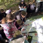 Zunächst wollten wir aber einen anderen Teil unseres Waldes noch besser kennen lernen – seine sonst eher unscheinbaren Bewohner. Also machten wir uns auf die Suche nach Spinnen, Käfern und Co. Dank unserer Bestimmungs-App haben wir dabei gelernt was ein Stigmatogaster ist (ein Bodentier, das zu den Hundertfüßern gehört), haben diverse Pilze und ihre Aufgaben im Wald kennengelernt und sogar ein Feuersalamander hat sich uns gezeigt.