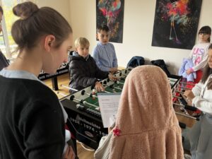 Gestern durften die Viertklässler unsere weiterführenden Schulen kennenlernen. Begleitet wurden sie von ihren engagierten Paten aus den 8. Klassen, die sie durch die verschiedenen Stationen der Päda-Rallye führten. Der Kennenlerntag ist eines von drei Modulen, um den Übergang von der Grundschule auf die weiterführende Schulart zu erleichtern. Ob beim Tischkicker-Turnier, beim Kunstwerk im Kunstraum, beim Rätseln über das Peru-Projekt oder beim Erkunden der Biologie-Räume – überall warteten spannende Aufgaben. Für jede erfolgreich gemeisterte Station erhielten die Kinder einen Buchstaben.