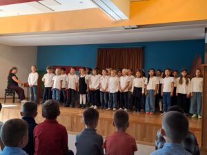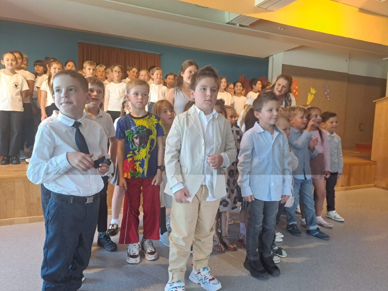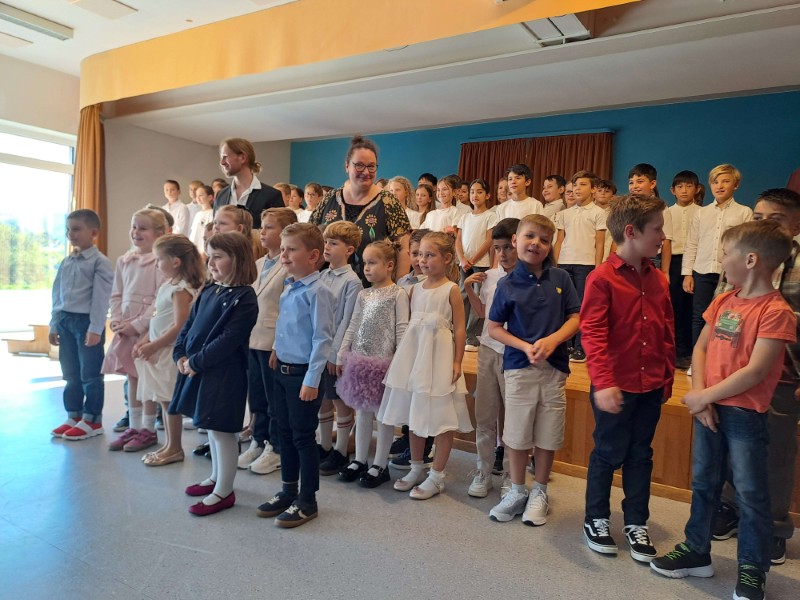 Die Viertklässler trugen das bekannte ABC-Lied vor und gaben damit symbolisch den Stab an die Schulanfänger weiter. Nach den Darbietungen wurden die neuen Erstklässler von ihren Klassenlehrerinnen ins Klassenzimmer begleitet, während für die Eltern ein weiteres Programm vorbereitet war.