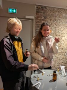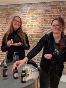 Bevor wir nun unsere Parfums selbst gestalten konnten, erklärte unsere Tourleiterin uns, wie man durch die unterschiedlichen Verhältnisse der Noten auch variierende Düfte mischen kann. Fragonard feiert jährlich eine „Blume des Jahres“, welche in der Kopfnote des Parfum für den Workshop enthalten ist. 2025 wird die Frische der Zitronenblüte zelebriert, welche dem Duft eine florale und spritzige Note verleiht. Die Eigenkreationen durften wir mitnehmen und uns wurden danach im Shop noch einige Produkte von Fragonard vorgestellt, die man anschließend reduziert erwerben konnte.